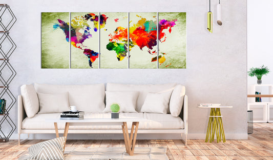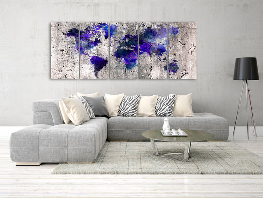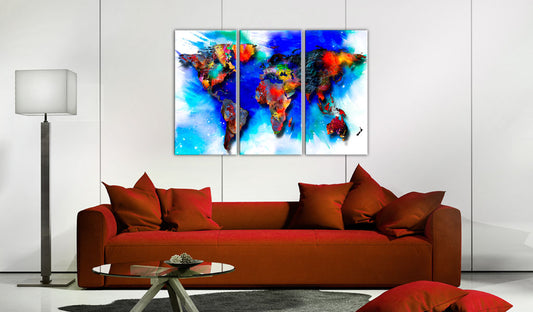 Weltkarte als Leinwandbild - World Map: Ink Blots (5 Parts) Narrow