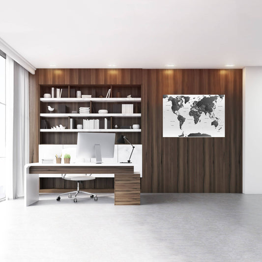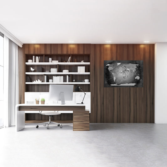 Echtglas Wandbild - Weltkarte Schwarz & Weiß