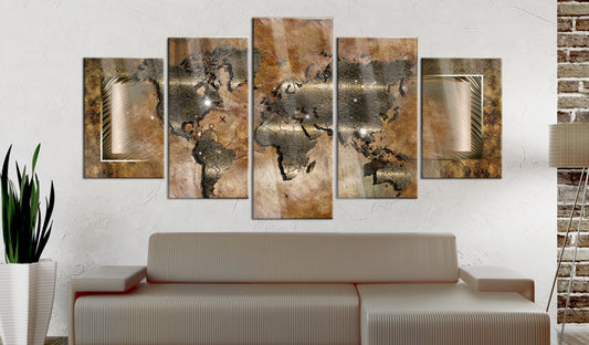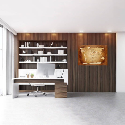 Echtglas Wandbild - Weltkarte Braun Farbenfroh