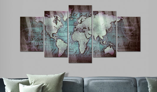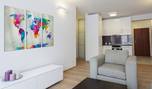 Echtglas Wandbild - Weltkarte Retro Bunt