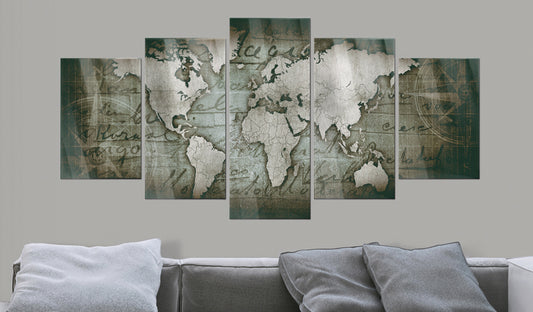 Echtglas Wandbild - Weltkarte Blue Ocean