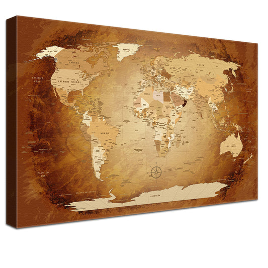 Weltkarte als Leinwandbild - Weltkarte Beige Chic