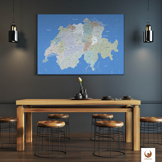Leinwandbild - Schweizkarte Hellblau - Pinnwand, Deutsch|Canvas Art - Switzerland Lightblue - Pinboard, German