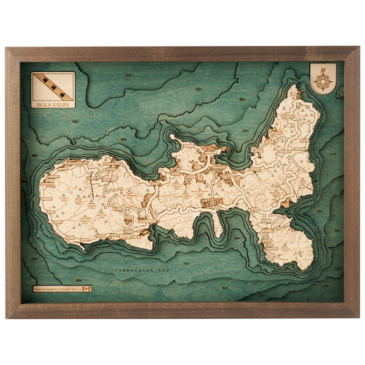 Elba | 3D-Holzkarte aus Holz von Cutting Brothers als Wandbild
