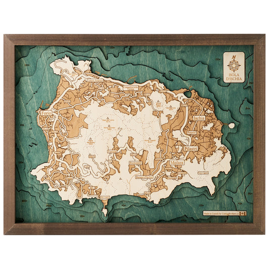 Ischia | 3D-Holzkarte aus Holz von Cutting Brothers als Wandbild