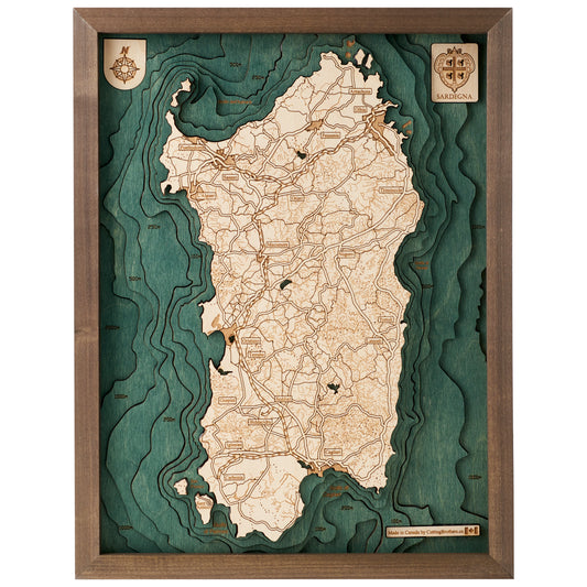 Sardinien | 3D-Holzkarte aus Holz von Cutting Brothers als Wandbild