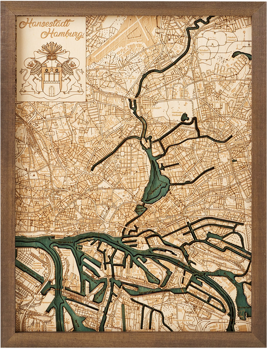 Stadtkarte von Hamburg | 3D Wandbild aus Holz von Cutting Brothers