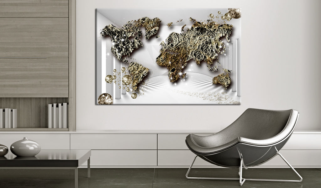 • Handgefertigte Weltkarte Golden Future als Pinnwand
